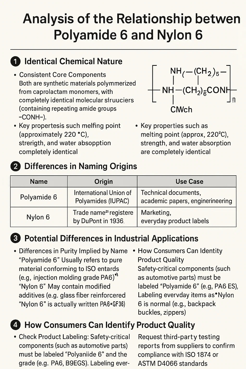 • Componentes Centrais Consistentes: Ambos são materiais sintéticos polimerizados a partir de monômeros de caprolactama, com estruturas moleculares completamente idênticas (contendo grupos amida repetidos -CONH-).
