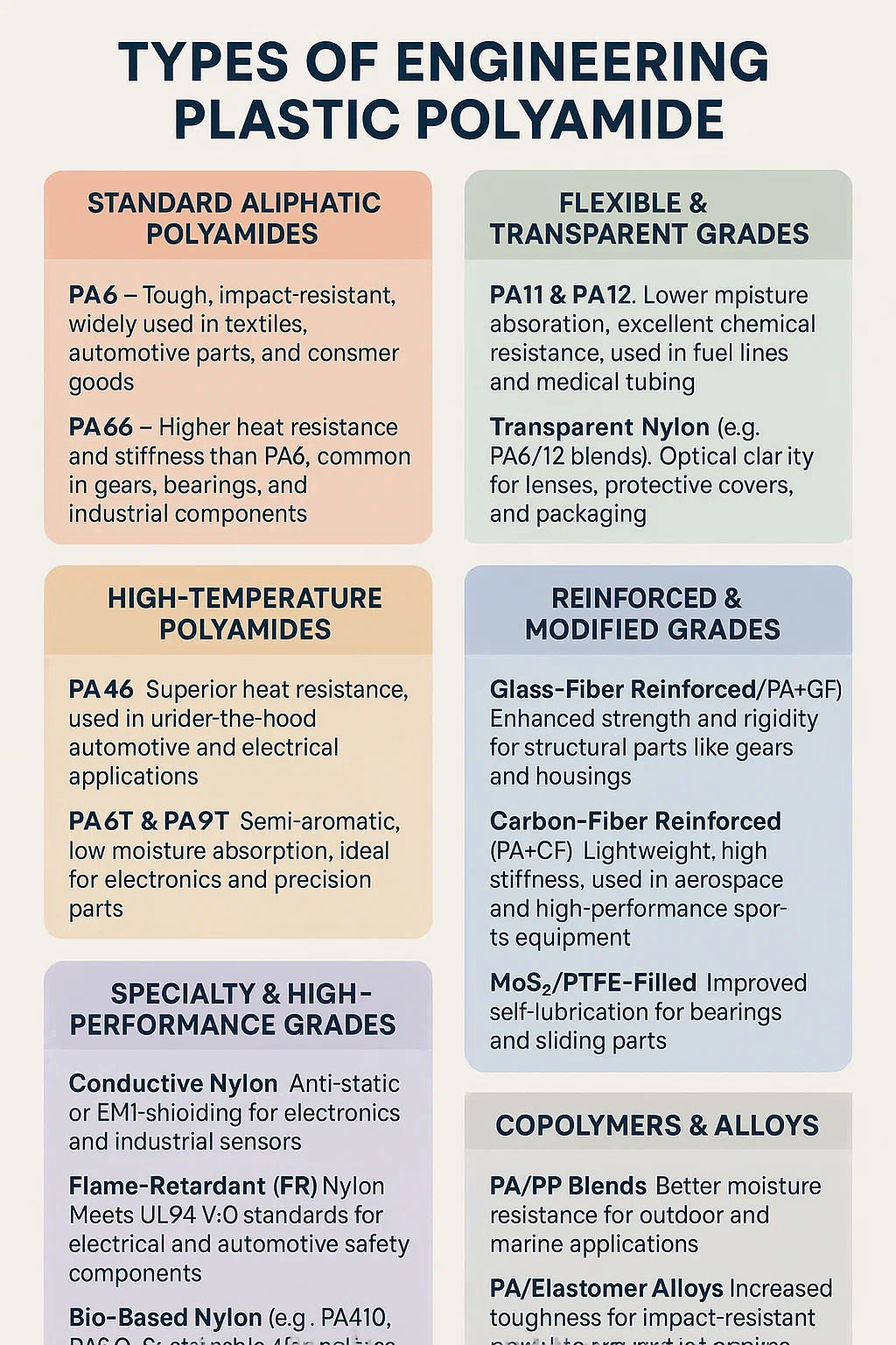PA6T & PA9T-Absorção semi-átomática e de baixa umidade, ideal para peças eletrônicas e de precisão.