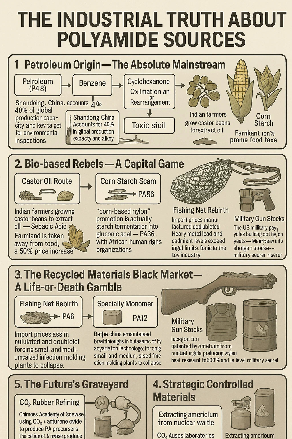 Refino de borracha com CO2: A Academia Chinesa de Ciências usa óxido de etileno CO₂ para produzir precursores de PA. Os custos de produção em massa do catalisador são baixos, subvertendo potencialmente as fases iniciais da hegemonia do petróleo. Extração de amerício de resíduos nucleares: Laboratórios americanos extraem actinídeos de resíduos nucleares por meio de polimerização catalítica, produzindo náilon que é resistente ao calor até 800°C e é classificado como segredo militar de nível SSS.